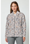 Layered comfort with a statement print. This scrub jacket offers a relaxed fit with a shawl-inspired collar shaped into a subtle V and a zip-front closure for easy wear. Dropped shoulders and long sleeves create a casual silhouette, complemented by self-fabric cuffs and a banded hem. Two side-entry pockets add storage, while a back yoke and subtle contrast bar tack stitching deliver durability. Finished with an allover print for added personality.